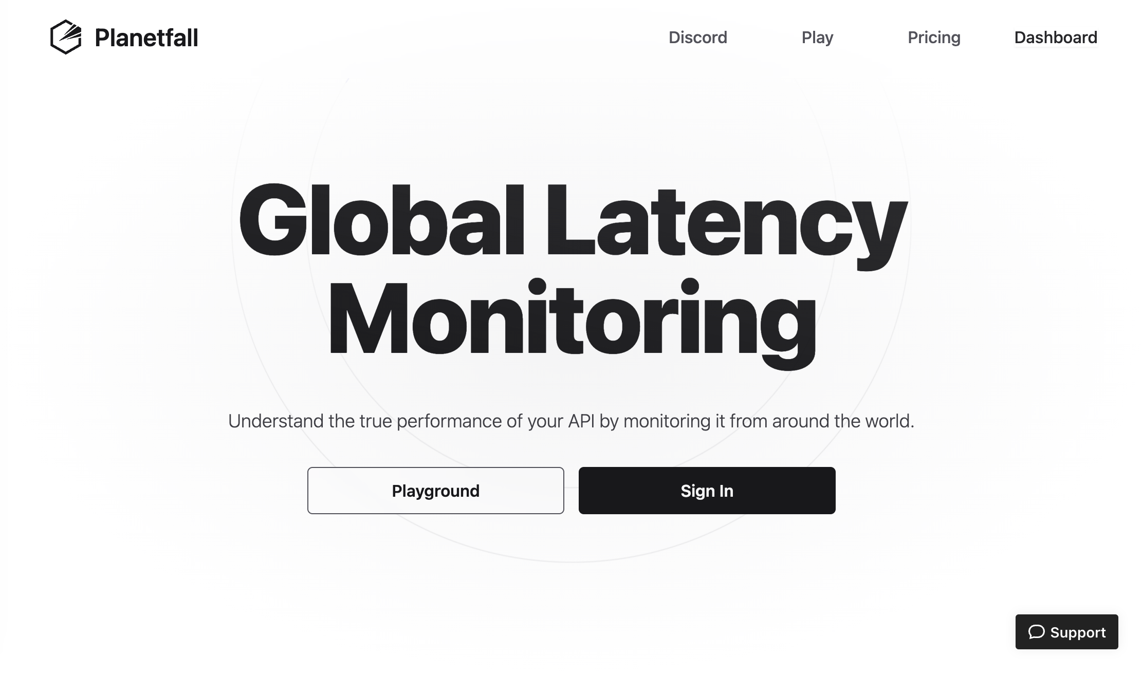 I'm building a SAAS providing global latency monitoring for your APIs and websites from edge locations around the world. Have you ever wondered how fast your API is in any part of the world? Planetfall allows you to find out and monitor it continuously.